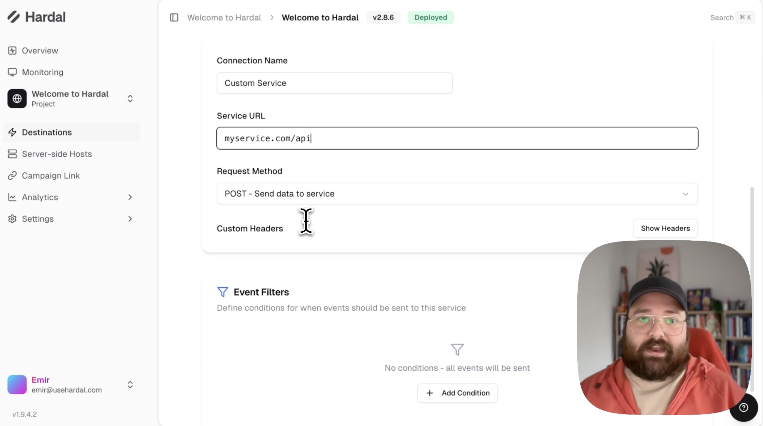 Navigate to your Hardal dashboard, select your signal, and click Destinations in the left menu.
