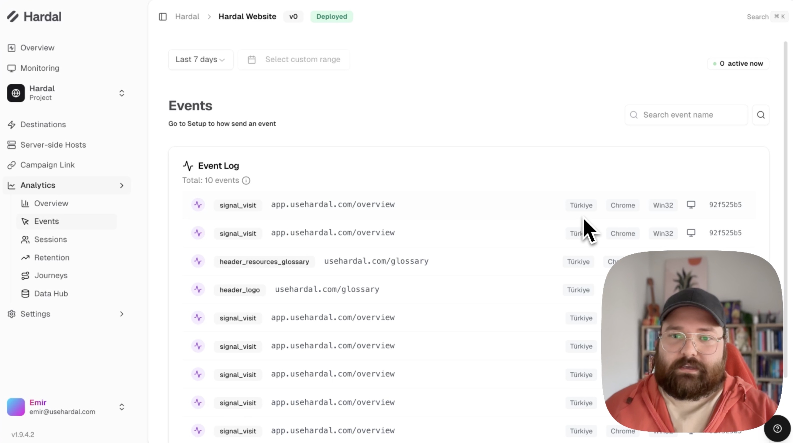 Return to your Hardal dashboard and navigate to Analytics > Events or Overview.