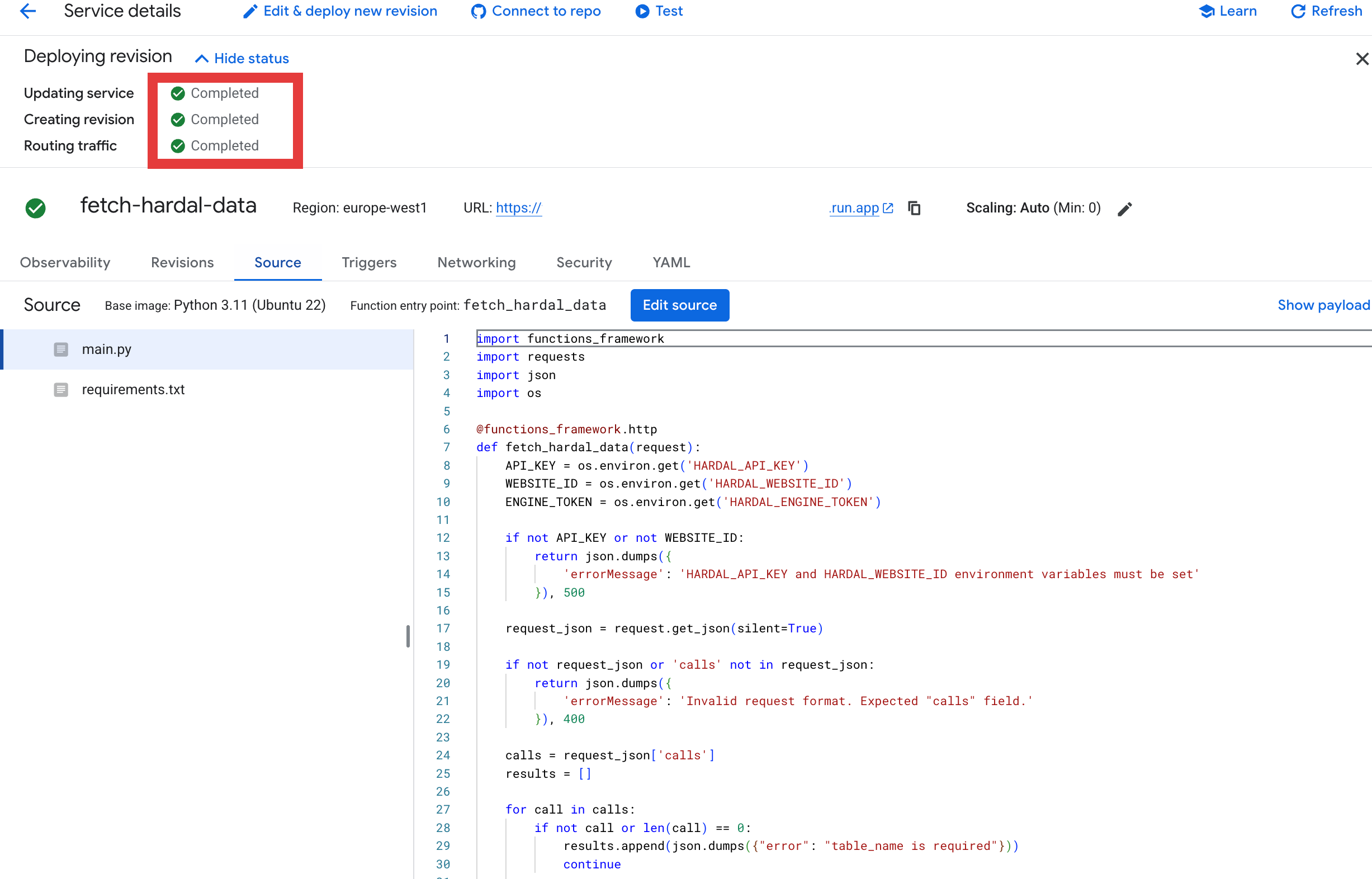 Remember: ⚠️ Function and BigQuery Table must be in the same region.