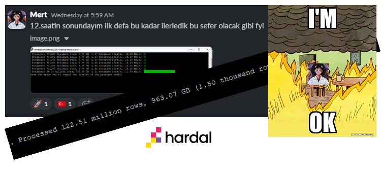 Yakın zaman içerisinde Google Cloud — europe sunucularından, Hardal'ın Türkiye sunucuları için kullandığı Huawei Cloud — Istanbul sunucularına transfer ettiğimiz 122 Milyon satır analytics datasının transfer sürecinden bahsedeceğim.