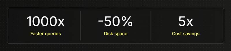 Sunucularımızda veritabanı olarak ClickHouse'un MergeTree Engine tablolarını kullanıyoruz. Toplamda dört tablomuz bulunuyor: Analytics, Config, Telemetry ve iki adet optimize edilmiş Materialized View. ClickHouse'u tercih etmemizin en önemli nedenlerinden biri, aşağıda PostgreSQL ile yapılan karşılaştırmada da görebileceğiniz performans farkı. 👇Detaylar burada.