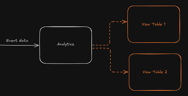 Tüm event verileri ham (raw) biçimde analytics tablosunda saklanıyor. Daha verimli okuma işlemleri için, bu ham veriyi iki ayrı tabloya aktardığımız bir optimizasyon sürecimiz var. Yani analytics tablosuna gelen her veri, otomatik olarak belirttiğim iki Materialized View tablosuna formatlanarak yazılıyor.